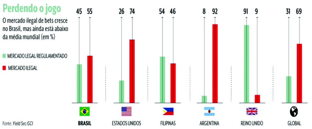 O setor ainda luta, porém, para combater as plataformas ilegais, que representam ao menos 40% do mercado de apostas no país, e melhorar a reputação ante a opinião pública. Há ainda preocupação com o vício em jogos, que levou o governo a criar o Observatório Saúde Brasil de Apostas Eletrônicas, com ações de apoio a usuários em busca de serviços do SUS.